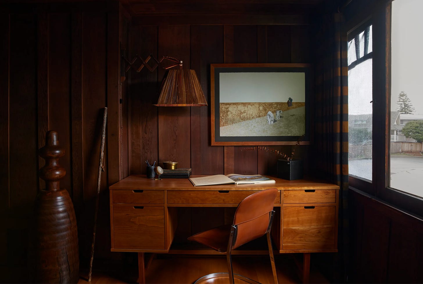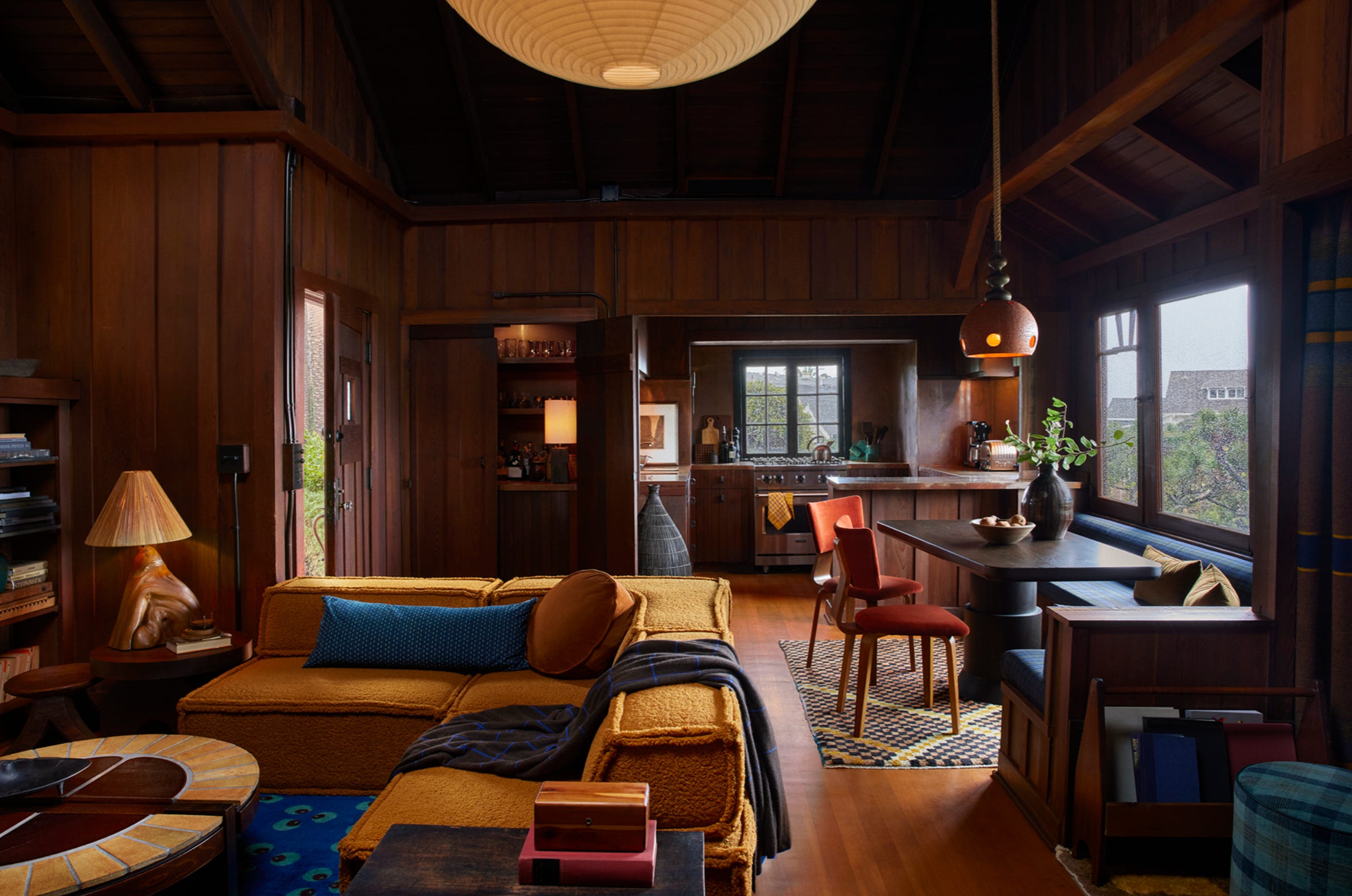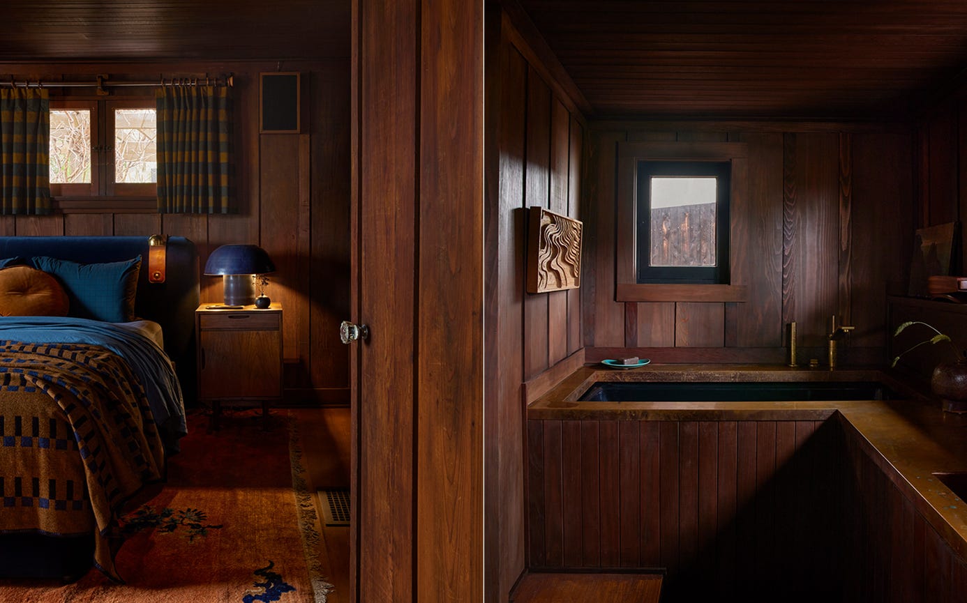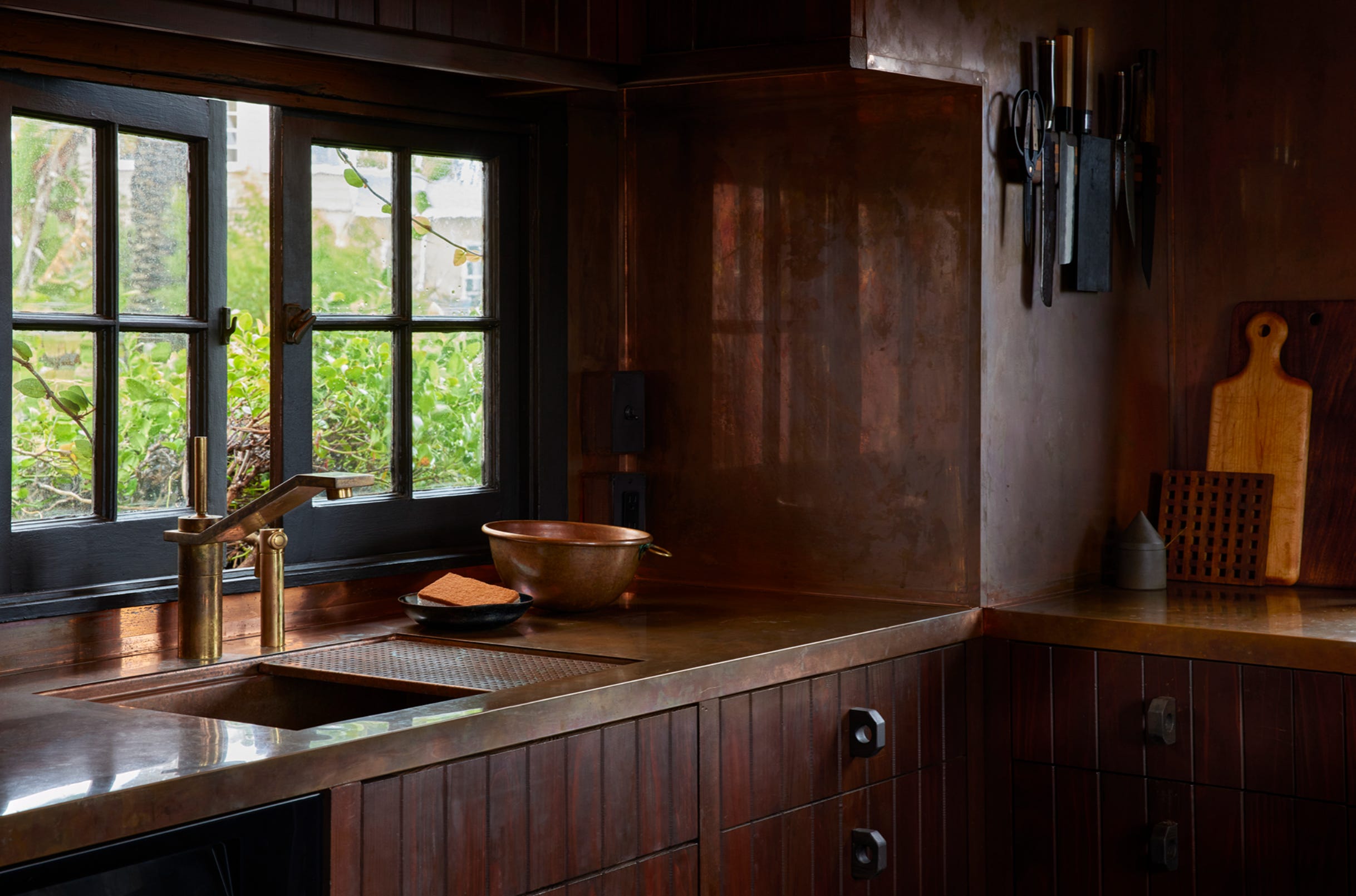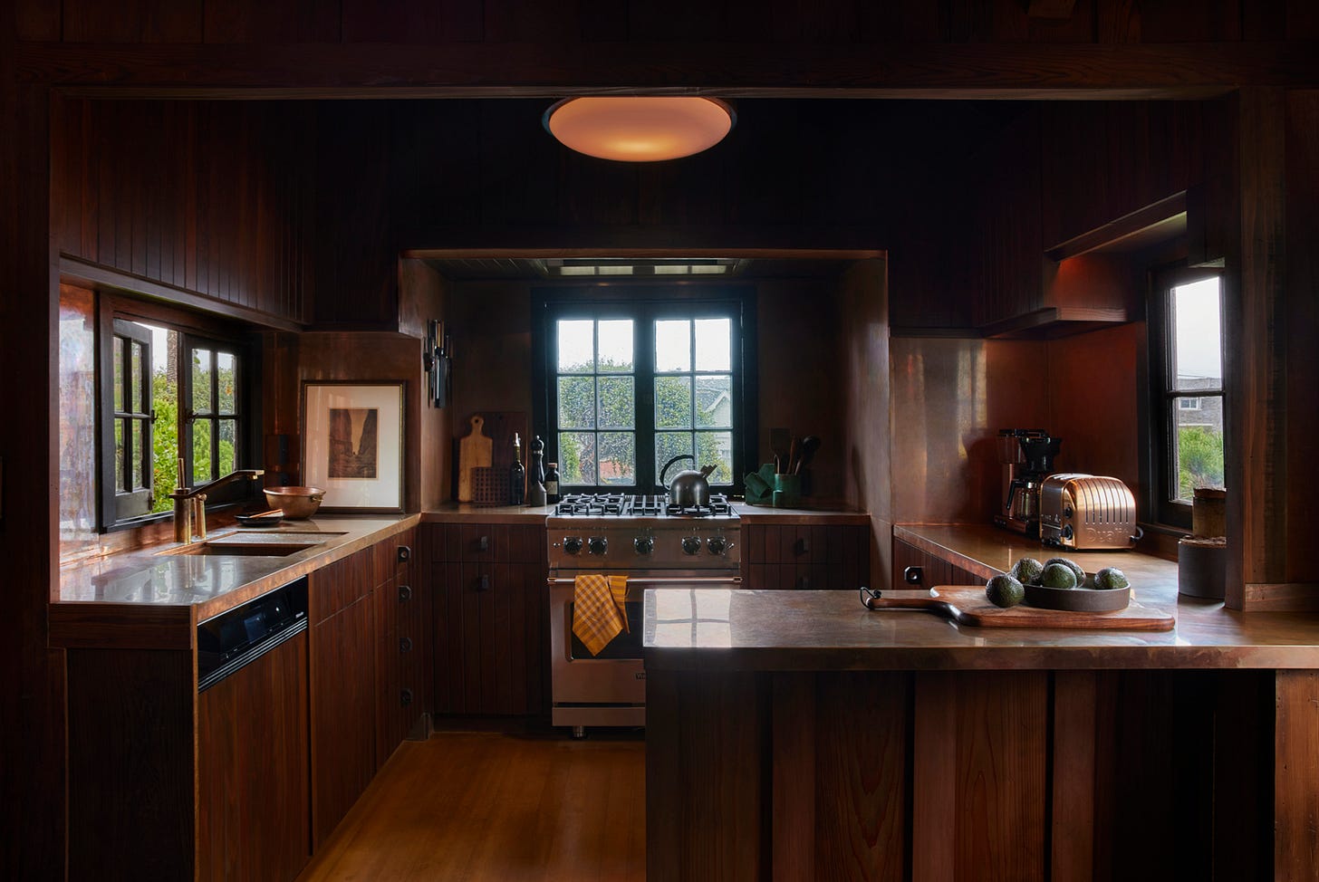 Nestled somewhere amongst them is this impeccably-designed, warm, woodsy 727-square foot craftsman home. The house was built in 1917 and has been designated a historic structure, so design studio Hammer and Spear had their work cut out for them. They brought the spirit of the home’s quintessential California architecture inside by restoring its 105-year old redwood walls, swapping tile for copper countertops, and decorating with vintage Noguchi lanterns and antique textiles.