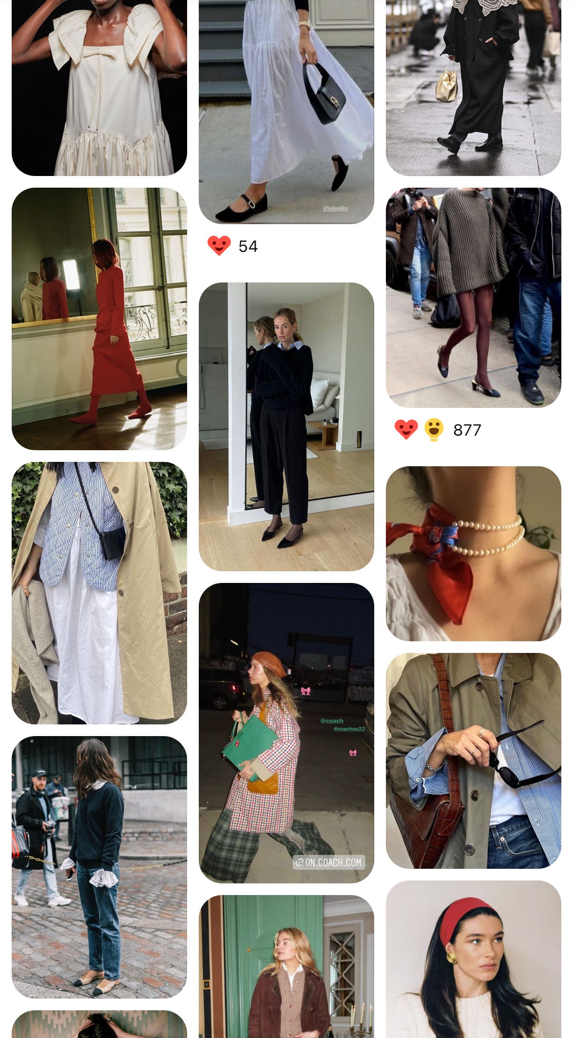 But upon closer examination: I love crisp white cotton, especially when contrasted with other textures. I like clever, feminine details, like a ruffle peeking out of a sleeve or a scarf entwined with a necklace. I gravitate towards things that are preppy, like headbands and trench coats and mary janes. Like I do in my home, I prefer neutrals with pops of color in the accessories.