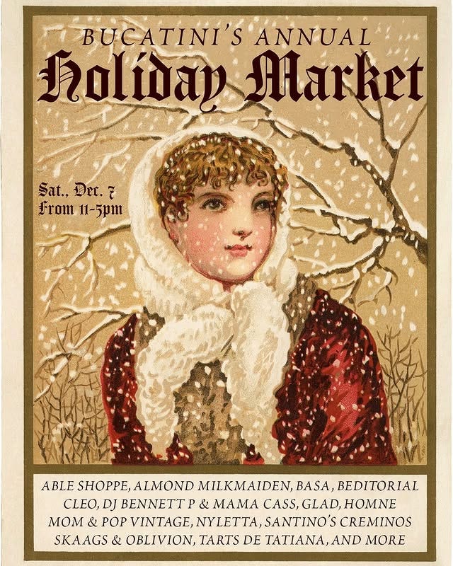 I’ll be at Bucatini’s holiday market in LA tomorrow, December 7th, slinging Bucatini Girlfriend hats and Pasta Club gift boxes all the livelong day. If you’re in the vicinity, stop by between 11 am and 5 pm to say hello and shop our collab!
