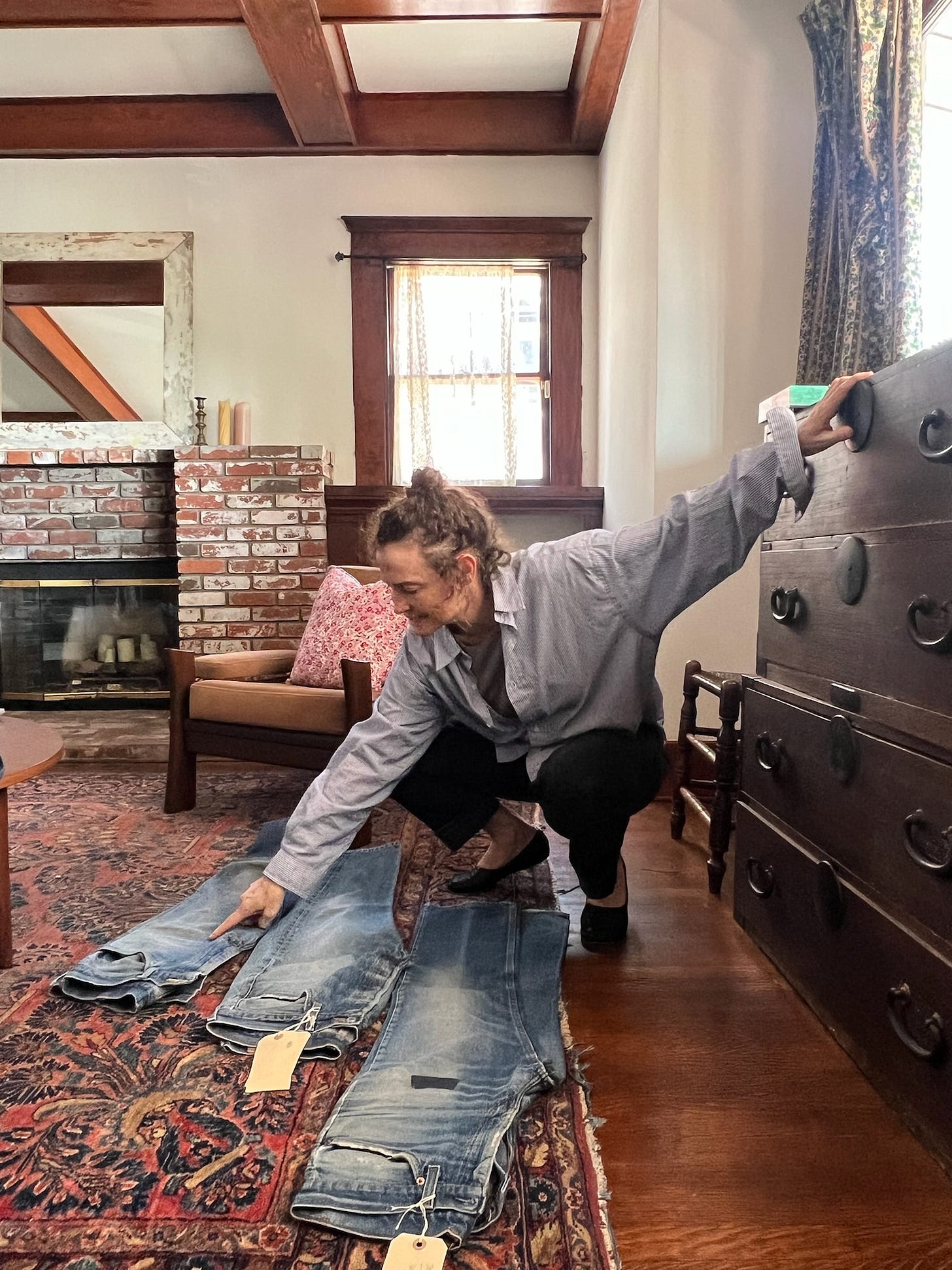 I don’t look to other designers for inspiration or influence. I am always looking inward and I am always guided by what I am attracted to; my affections guide me to inspiration and, at this point, I trust that process. I think part of being a good designer is leaning into trusting your own voice and intuition and allowing those micro interests to percolate, because they become bigger. Even in denim, I can’t tell you all the things a denim aficionado might know, like the colors of vintage labels and what they mean, but I can spot a beautiful vintage wash from across the flea market. I can hold up a pair of jeans and tell you how to get that specific look, I can see the weave of the denim and understand if it will work, and I have been doing it long enough to know the “hows” behind everything. I am guided by beauty, but I am no expert collector. I find worn-out denim to be one of the most beautiful things; it’s like art to me, but art meant to be worn and lived in. An art that lives.