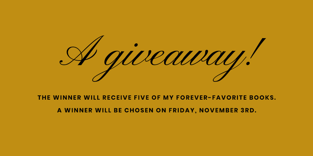 Before we go, I have a little surprise for you: A GIVEAWAY! I’ve curated a selection of my own favorite books—ones that I would read over and over—and I’m giving them away to one special reader of this newsletter. All you have to do is “like” this newsletter in the Substack app or site to be entered to win. You may be prompted to sign into Substack—make sure you do that for it to count. If you’re a paid subscriber, you’ll automatically be entered an additional time!