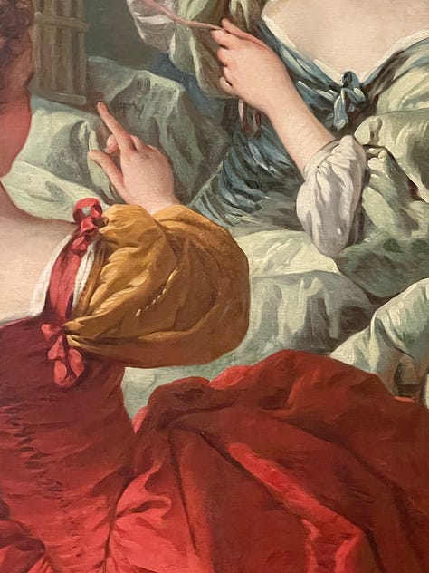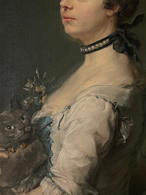 I’ve mentioned versions of this before, but a little thing I like to do sometimes (especially when I’m in portrait galleries) is to look for themes within the artwork. I don’t mean conceptual themes, but more like consistencies within the paintings, ie. shoes or animals or stripes. Doing this forces me to look at each piece with more focus; truthfully, I tend to glaze-over when I’m in a room of 18th century European portraits and I’ve been known to zoom through a room of them at warp speed.