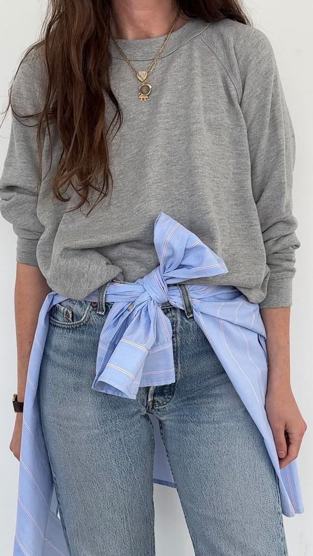 My mind was blown when Donni shared their founder Alyssa Wasko Stein’s favorite way to tie a shirt around the waist last month. The most important shirt-styling trick since the Jenna Lyons cuff!