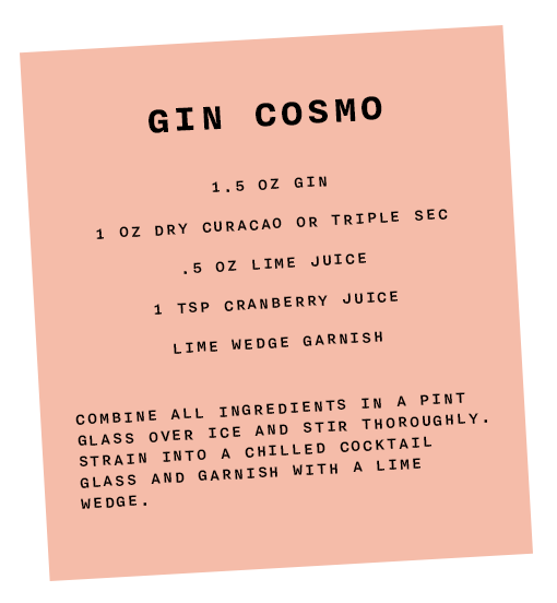 and for their go-to aperitivo bev recs. Chloe’s answer: a gin cosmopolitan! A traditional vodka cosmo feels very “girls night out” (we can thank SATC for that association), but per Chloe’s suggestion, swapping out the vodka for gin is definitely the move for a late afternoon. Here’s how to make one:Andrea says that the perfect aperitivo wine is “light and fresh, can be shared with friends, is versatile enough to pair with anything (or nothing at all!), and sips a lot quicker than you realize.” Her suggestions: