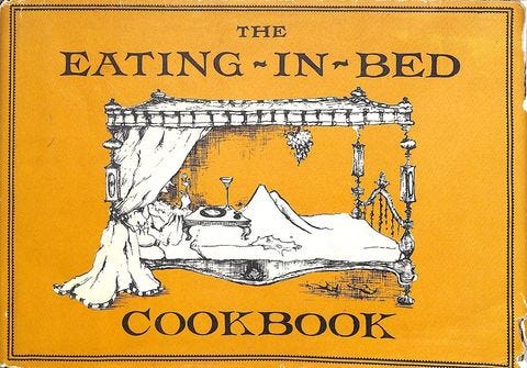 Gohar World shared images of a 1962 book called The Eating-In-Bed Cookbook by Barbara Ninde Byfield, and judging by its cover it’s right up my alley. I found just one available copy on the entire internet for anyone who’s interested in making a recipe called Cheesecake Under the Covers. (For the record, I am not an in-bed eater, but I might make an exception for cheesecake.)