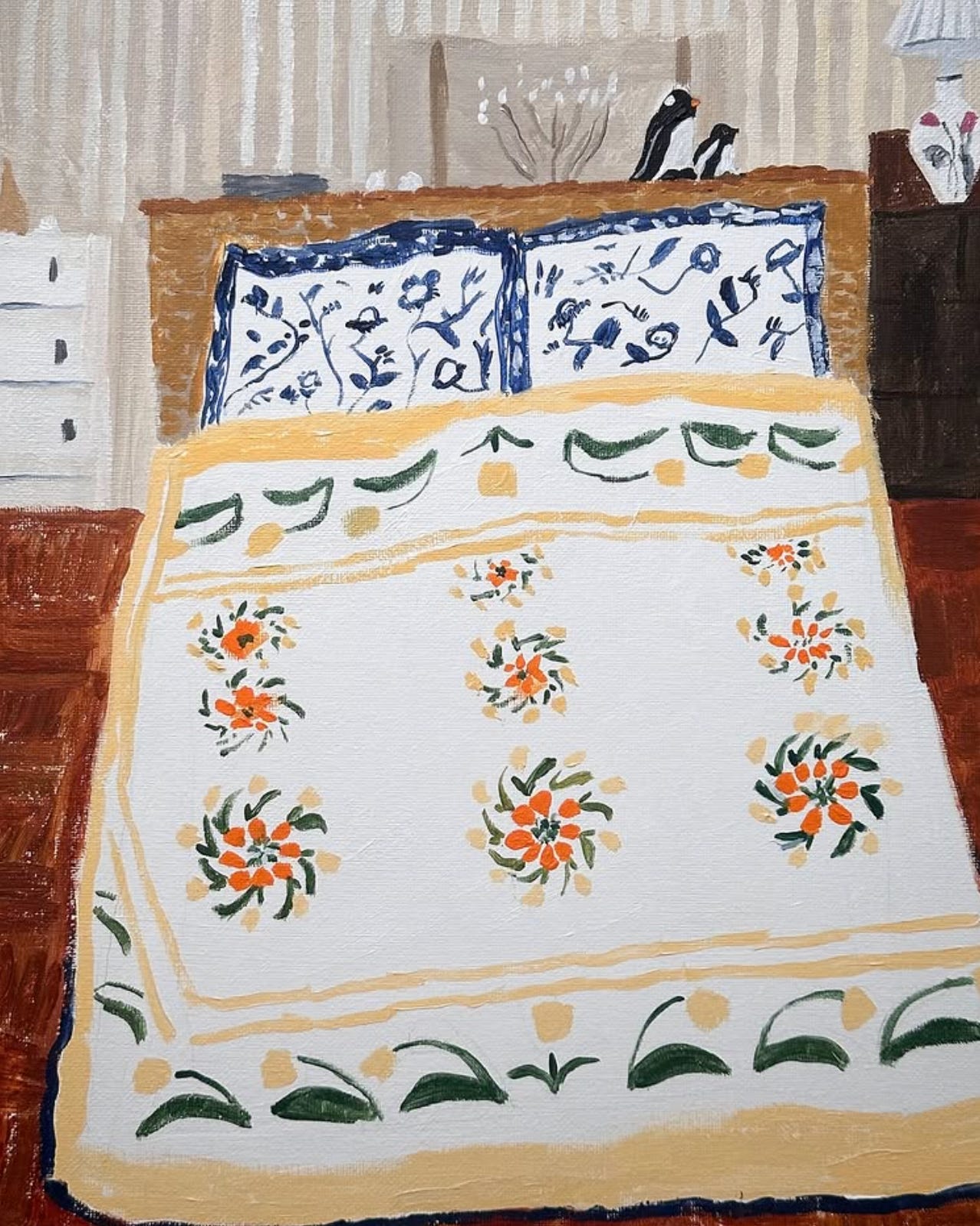 Does this look familiar? Artist Polly Schindler painted Sally’s bedroom from When Harry Met Sally. I need this to be a series.