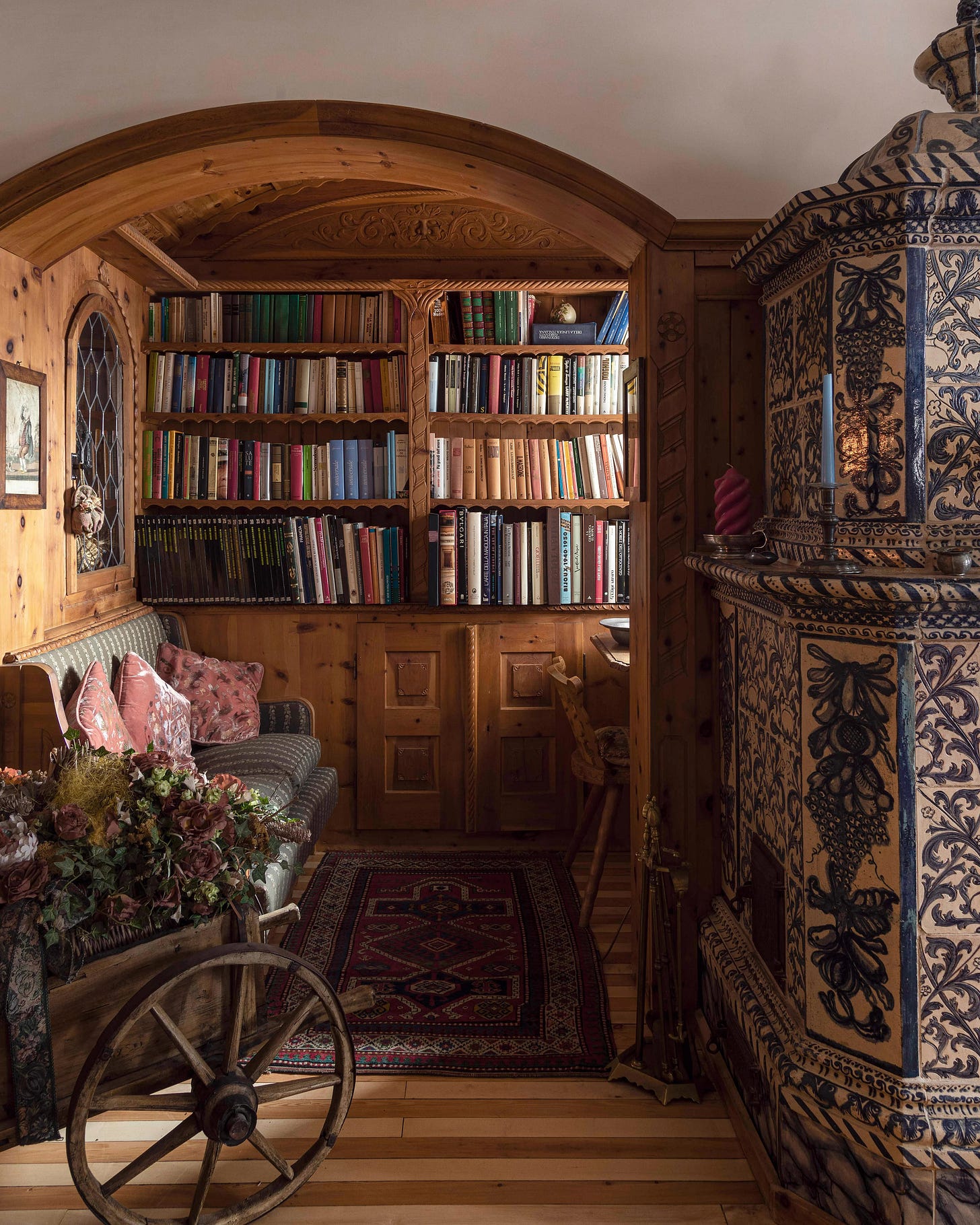 I should say “houses,” specifically the houses featured in the book The Queen of the Dolomites: Living in Cortina d’Ampezzo by Servane Giol, with photographs by Mattia Aquila. The book features the homes of several residents of Cortina d’Ampezzo, an alpine town in northern Italy known for its chalets, mountain views, and many ski runs. File this book under “On the Wish List,” too, because I need to know more about whoever’s behind these rooms.